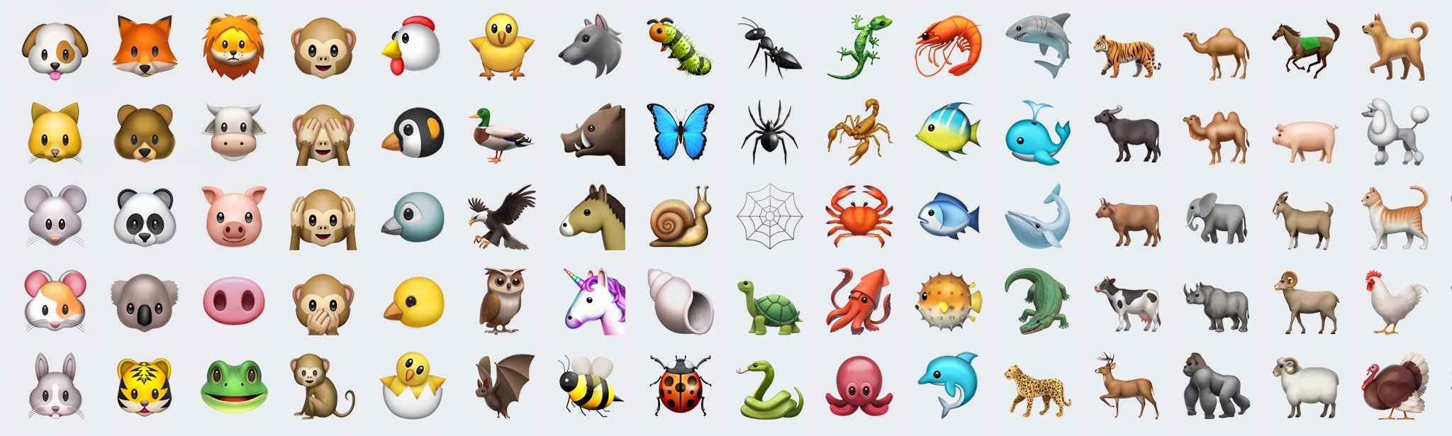 Above: New Animals in iOS 10.2 include Fox, Duck, Squid, Gorilla.