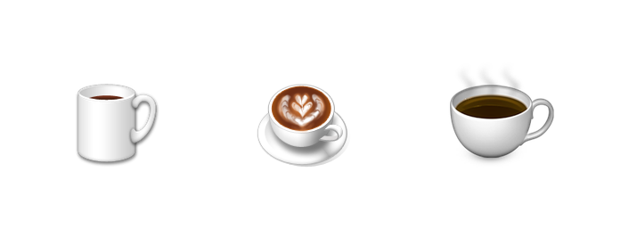 Many examples refer to a particular vendor design. For example the Hot Beverage Emoji may look like black tea, white coffee, or a latte depending on platform.