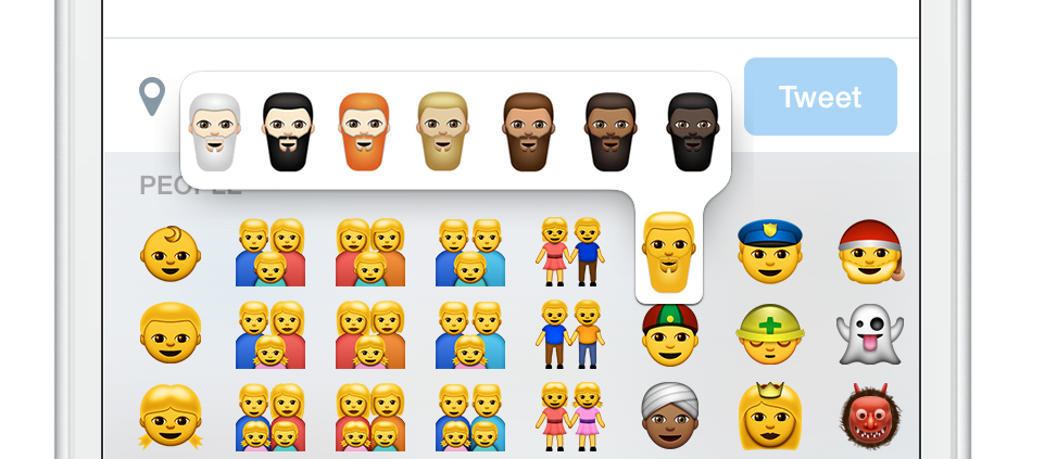 Beard emojis could come in the form of an emoji tag sequence, or other custom emoji attribute.
