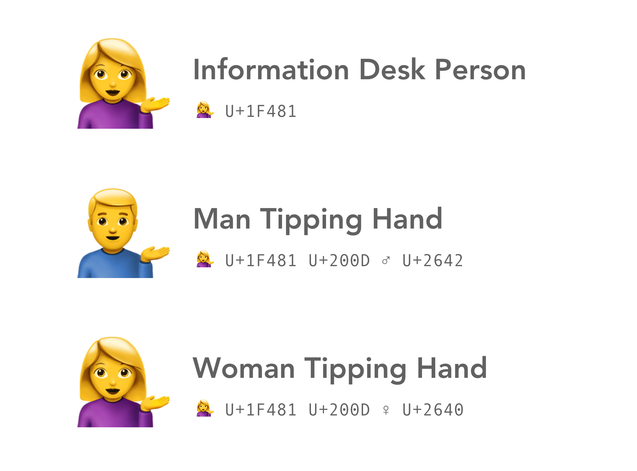 Above: Gendered Roles are female and male equivalents of existing emojis.
