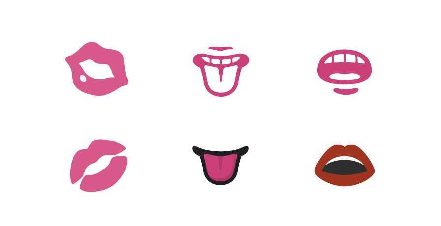 π Kiss Mark has changed orientation, and loses the gloss mark in the lower right. π Tongue and π Mouth lose their pink outlined appearance. Red doesn't often appear in the Android emoji color palette, but an exception is made for the lips on the mouth.