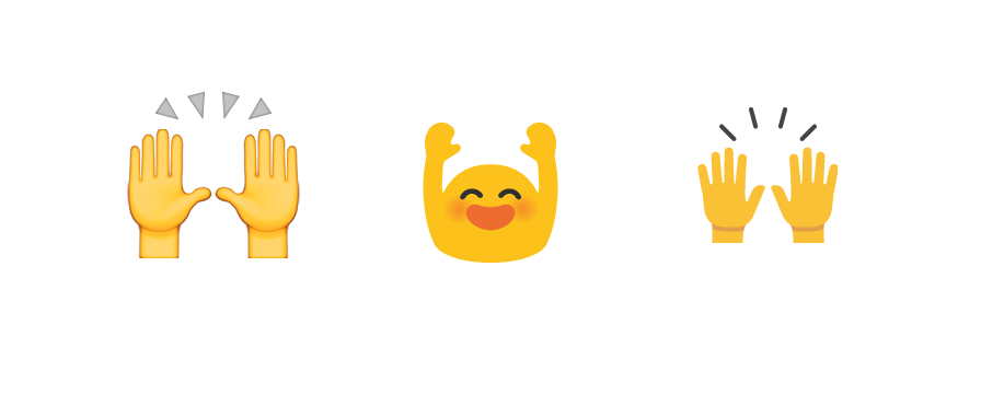 π Person Raising Both Hands in Celebration removes the person from the emoji, and now only shows the raised hands gesture, minus the person.