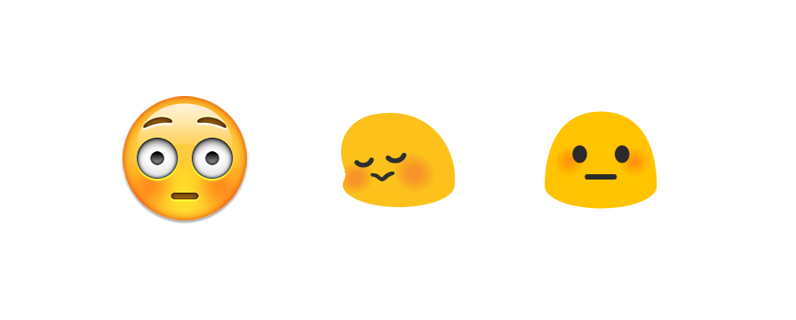 π³ Flushed Face gets a wide-eyed "what have I done" look, compared to the sheepish embarrassment of the emoji it replaces.