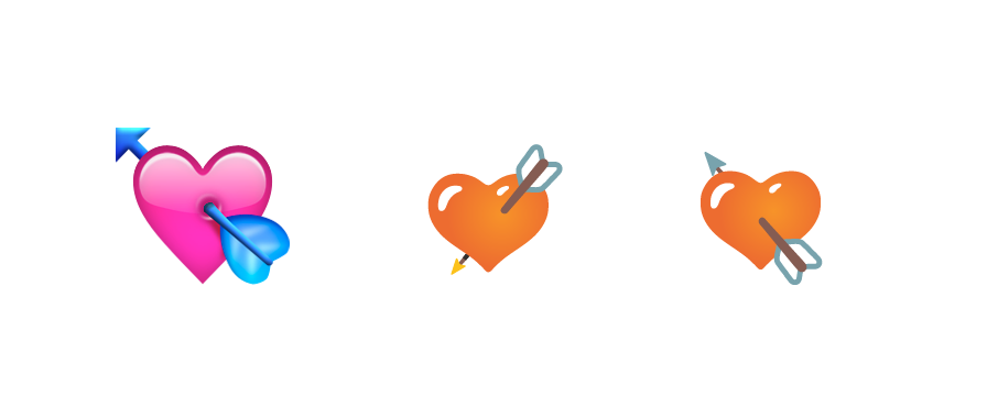 π Heart With Arrow has has the arrow pointing North-West instead of South-West.
