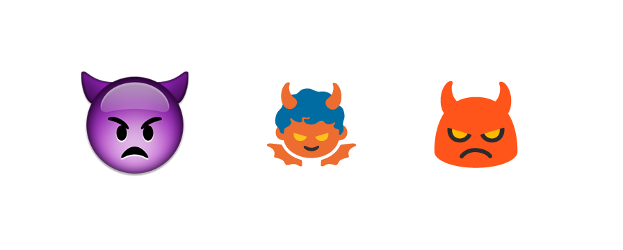 πΏ Imp takes on a more familiar shape, and matches the π Smiling Face With Horns.