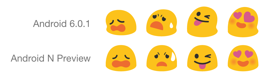 Android N Developer Preview 2, released this week, is the first to show off the new emoji changes.