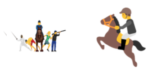 Modern Pentathlon includes five sports: a challenge at emoji sizes. Left: Emojipedia / Right: Google.