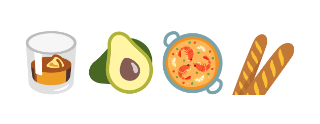 Above: New food and drink items from Unicode 9 are included.