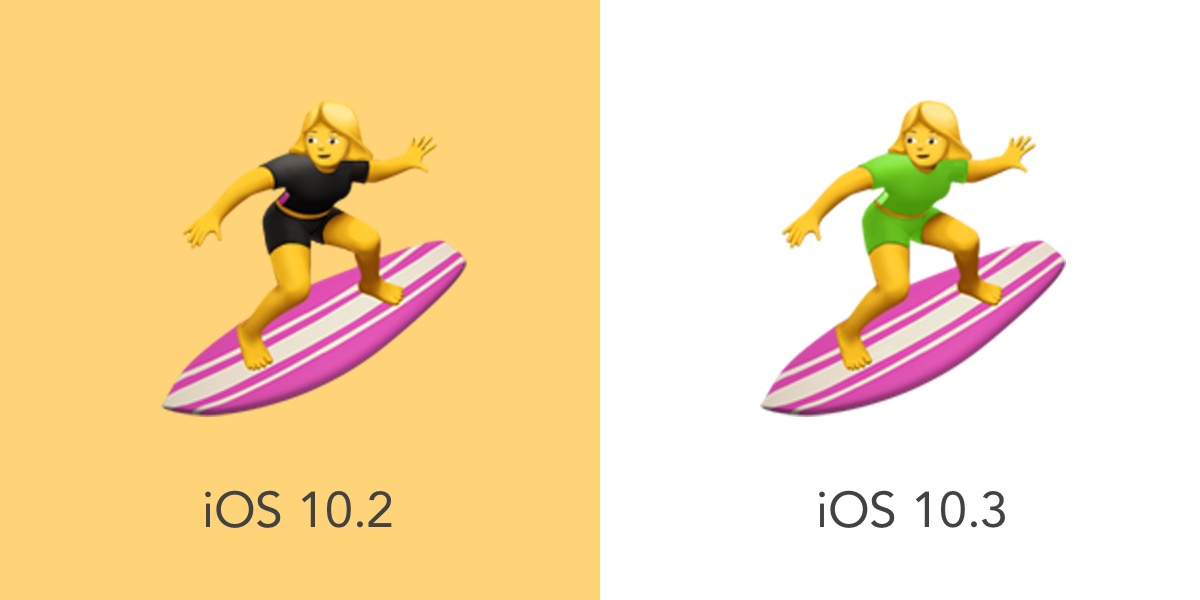 No new emojis were added in this update. iOS 10.3 was released on March 27, 2017.