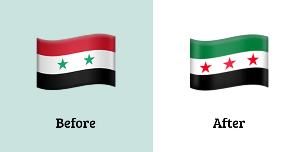 Apple is the first emoji vendor to update the Syrian flag emoji following the fall of the Assad regime on December 8, 2024.