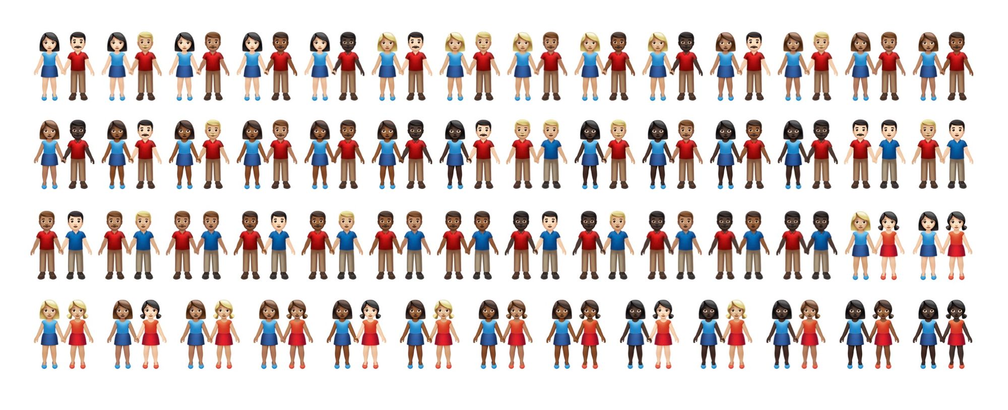 Coming this year are options to change the skin tone of the people holding hands, where each person can have a different skin tone. This will require a change to the usual emoji picker which until now has only required five options per emoji.