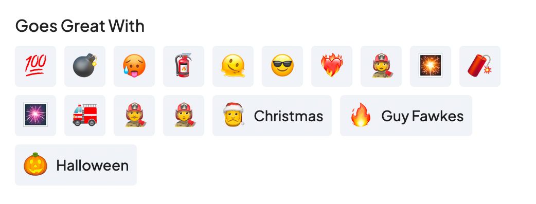 There's also a "Goes Great With" section for each emoji, prominently displaying both individual emojis and emoji-based events and topics that compliment the emoji you're presently viewing.