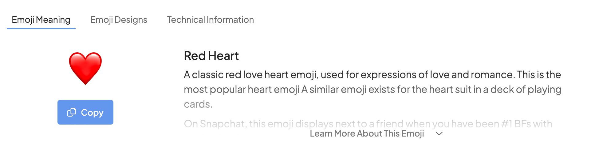 The copy function can be activated either by clicking the "Copy" button or clicking the emoji character itself.