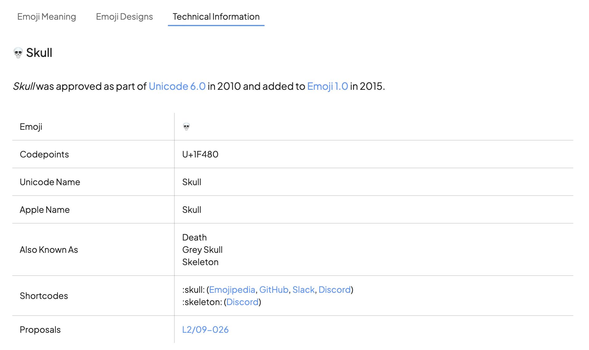 Meanwhile, selecting "Technical Information" will show a host of additional information related to that emoji.