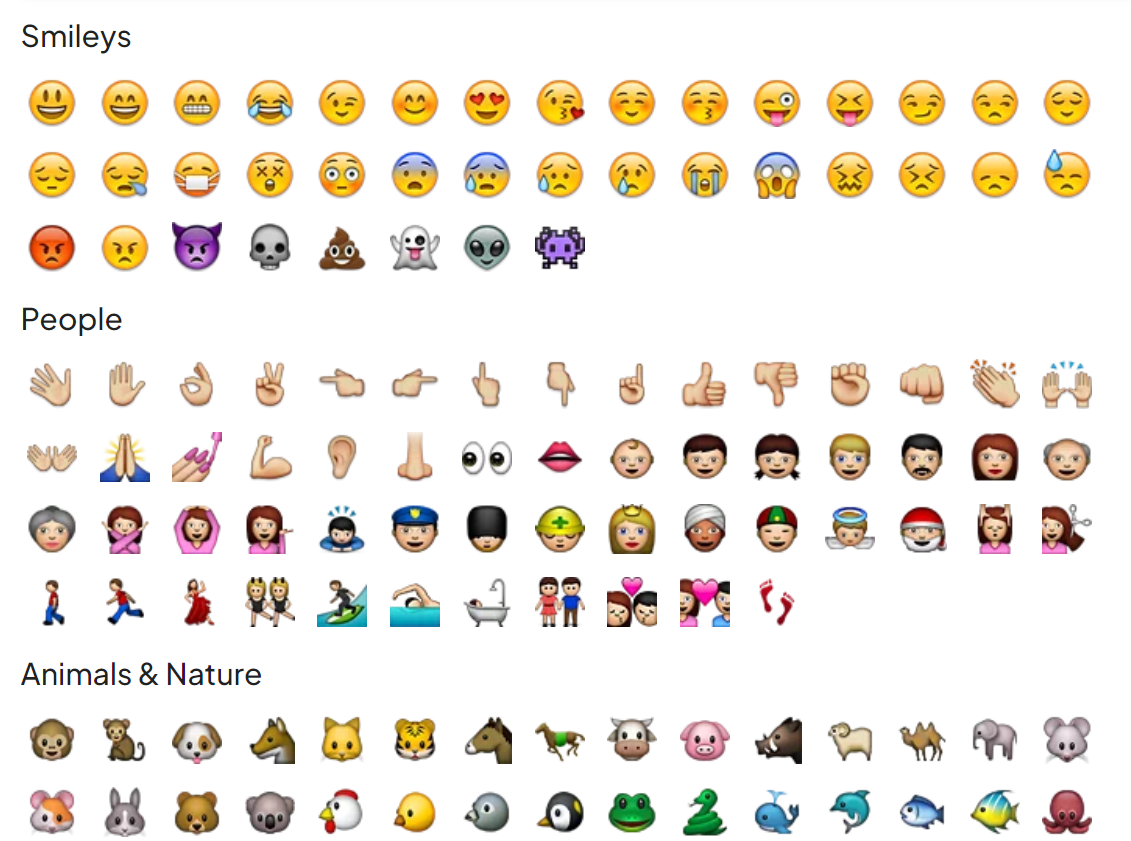 Take, for example, the π» Animals & Nature emoji category shown below.