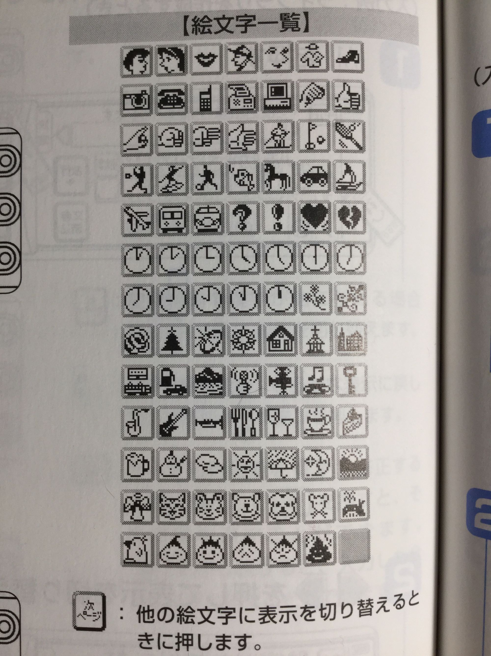This manual was purchased by Matt Alt, author and also known for converting Japanese games for English audiences, and the pixel-art emoji images shown here were recreated by vXBaKeRXv for archival on Emojipedia. Matt Alt also has a book covering many aspects of emoji origins in Japan.