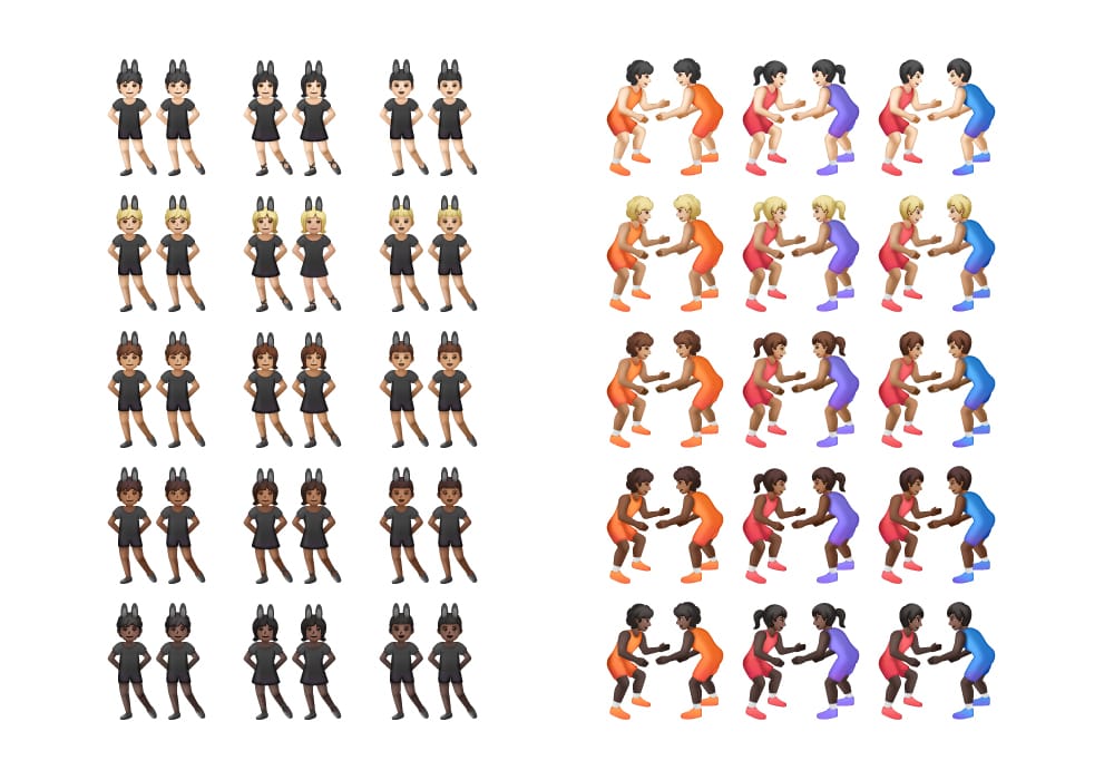If these 150 new sequences were to be approved in September of next year, it would mean the ๐ฏ People With Bunny Ears and ๐คผ People Wrestling would join the ๐ค Handshake emoji and various ๐ Kiss, ๐ Couple With Heart, and ๐งโ๐คโ๐ง People Holding Hands emojis in supporting two different skin tone options.