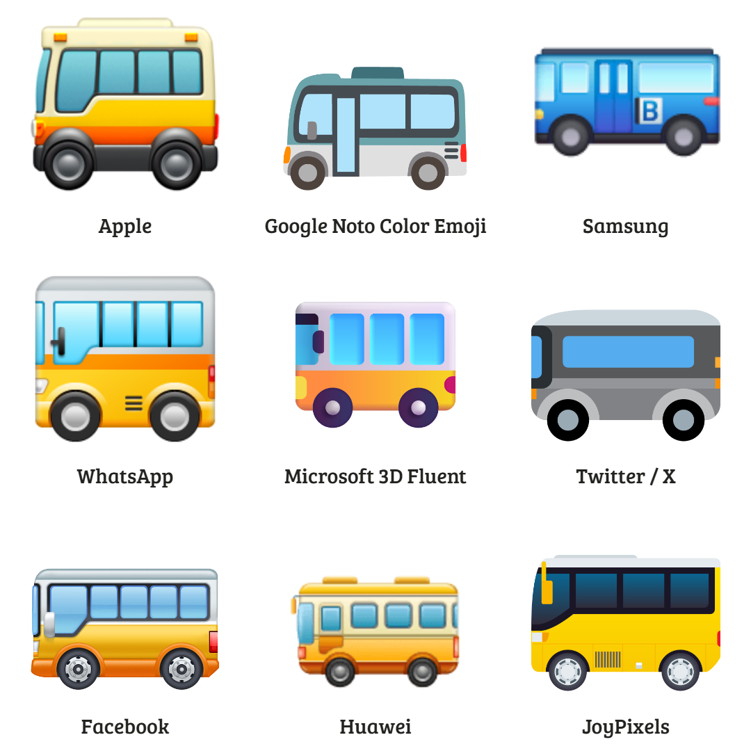 And many students can’t get to school without the dependable daily 🚌 Bus, which across many major vendors largely yellow in color and reminiscent of the stereotypical shade of the American school bus, with some exceptions—namely the emojis of Samsung, Google, and Twitter / X (which is also used on Discord).
