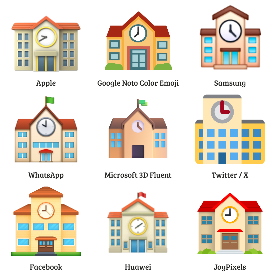 Almost all major vendors’ emojis universally feature a multi-story building with a giant clock on the front. Perhaps unsurprisingly, the usage of this emoji spikes around early September when many students worldwide return to the classroom.