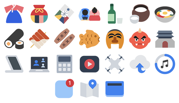 - Firstly, rendering culturally-specific Japanese emojis with designs representing related South Korean concepts (e.g. the 🍶 Sake emoji appearing as makgeolli).