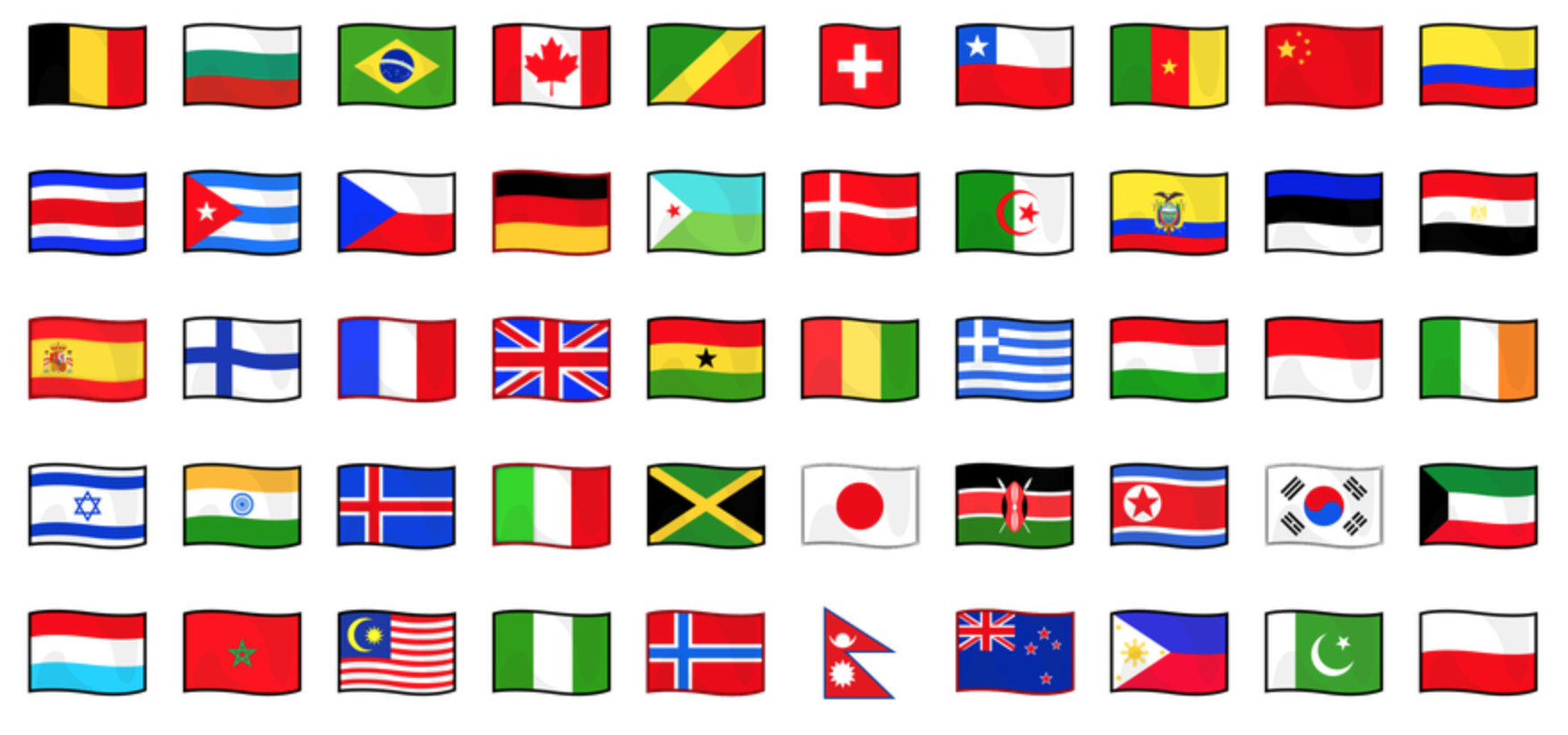 In addition to regular emojis, emojidex supports modifiers and flags.