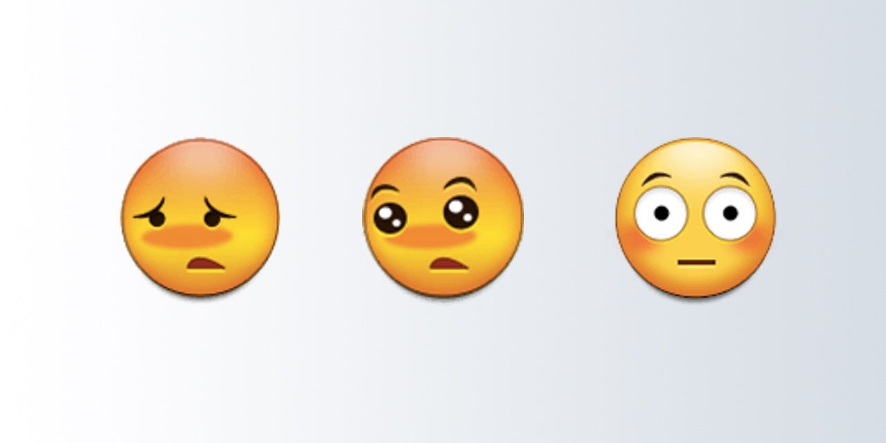 With Experience 9.0 in 2018, Samsung brought its design more in line with Apple’s, which displays wide, white eyes under raised eyebrows, a small, closed mouth, and, of course, its namesake flushed cheeks. Google similarly fashioned its 😳 Flushed Face with Android 8.0 in 2017, updated from its memorably bashful blob in Android 4.4–5.0. So did Microsoft the year before with its Windows Anniversary Update, previously featuring something of a woozier, boozier smiley under its Windows 8.0–8.1 operating systems.