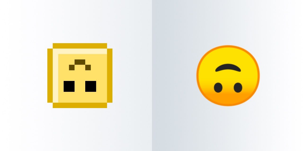 By 2015, Google's Gmail upside-down face was added to Unicode as the ๐ Upside-Down Face as we now know it. Most vendors implement the emoji as a flipped version of their ๐ Slightly Smiling Face, which telegraphs its own simpering irony.