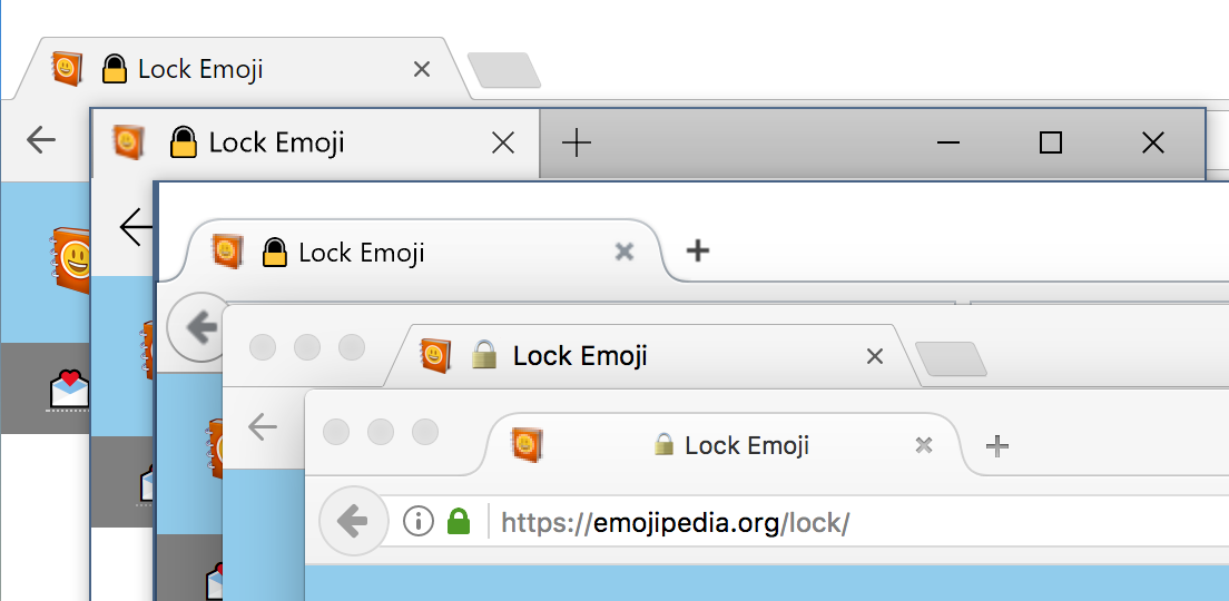 Above: Other browsers do not restrict the lock-related emojis in page titles. Top-Bottom: Chrome, Edge, Firefox (Windows); Chrome, Firefox (Mac).