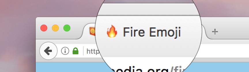 When viewing any page on Emojipedia, you will normally see the emoji and emoji name in the page title. For example on the page for π₯ Fire you can see the emoji clearly on the tab in Firefox: