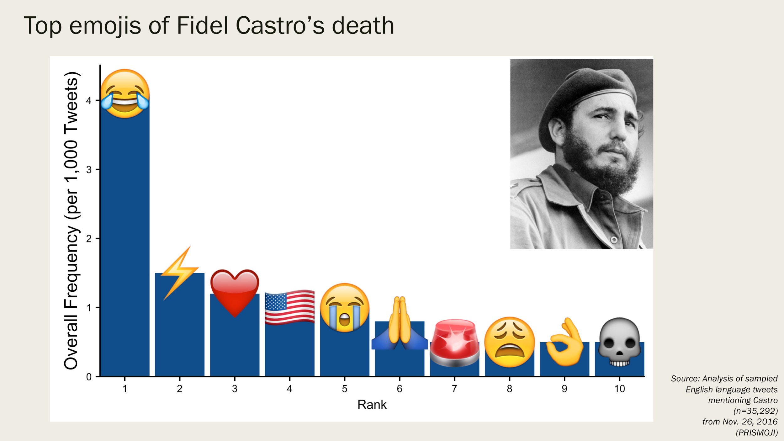 As DJ Khaled is fond of saying, “it’s a cold world out there” and this is apparent when looking at the top emojis used to refer to Castro’s death.