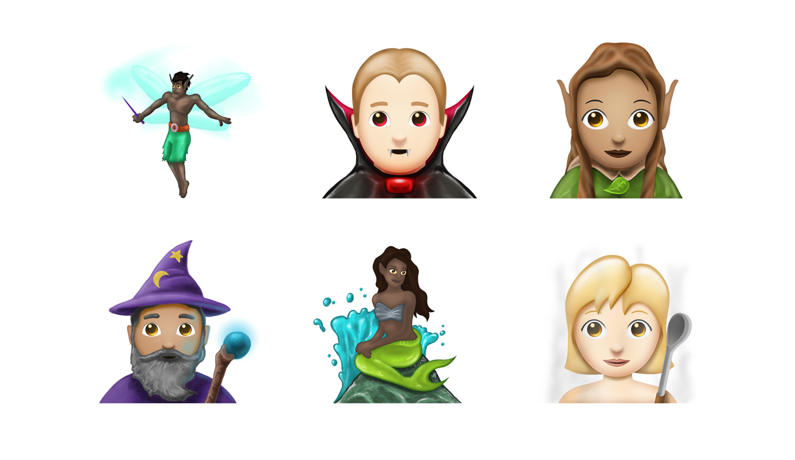 These include smileys, people, food, drink, flags, and for the first time: new fantasy characters such as a mermaid, genie, and vampire.