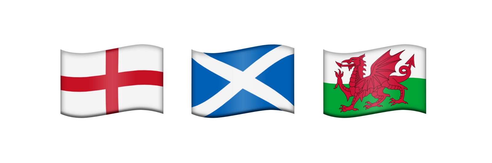 In Emoji 5.0, three new flags have been recommended for support by vendors: England, Scotland, and Wales.