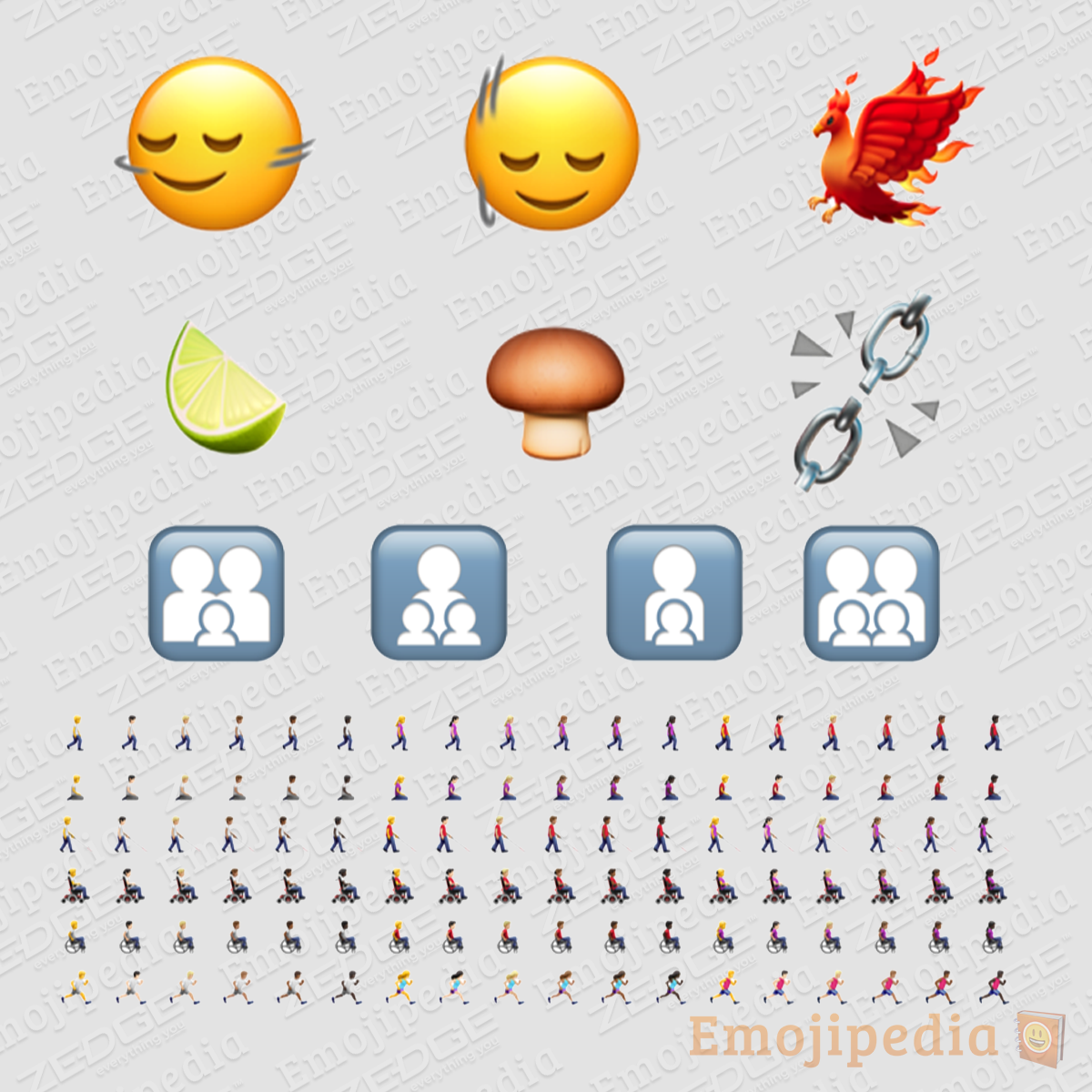 These 118 additions consist of six brand new emoji concepts, four new non-gender-specifying family emojis, and new direction-specifying versions of six existing people emojis that amount to 108 new emojis when gender and skin tone variations are accounted for.