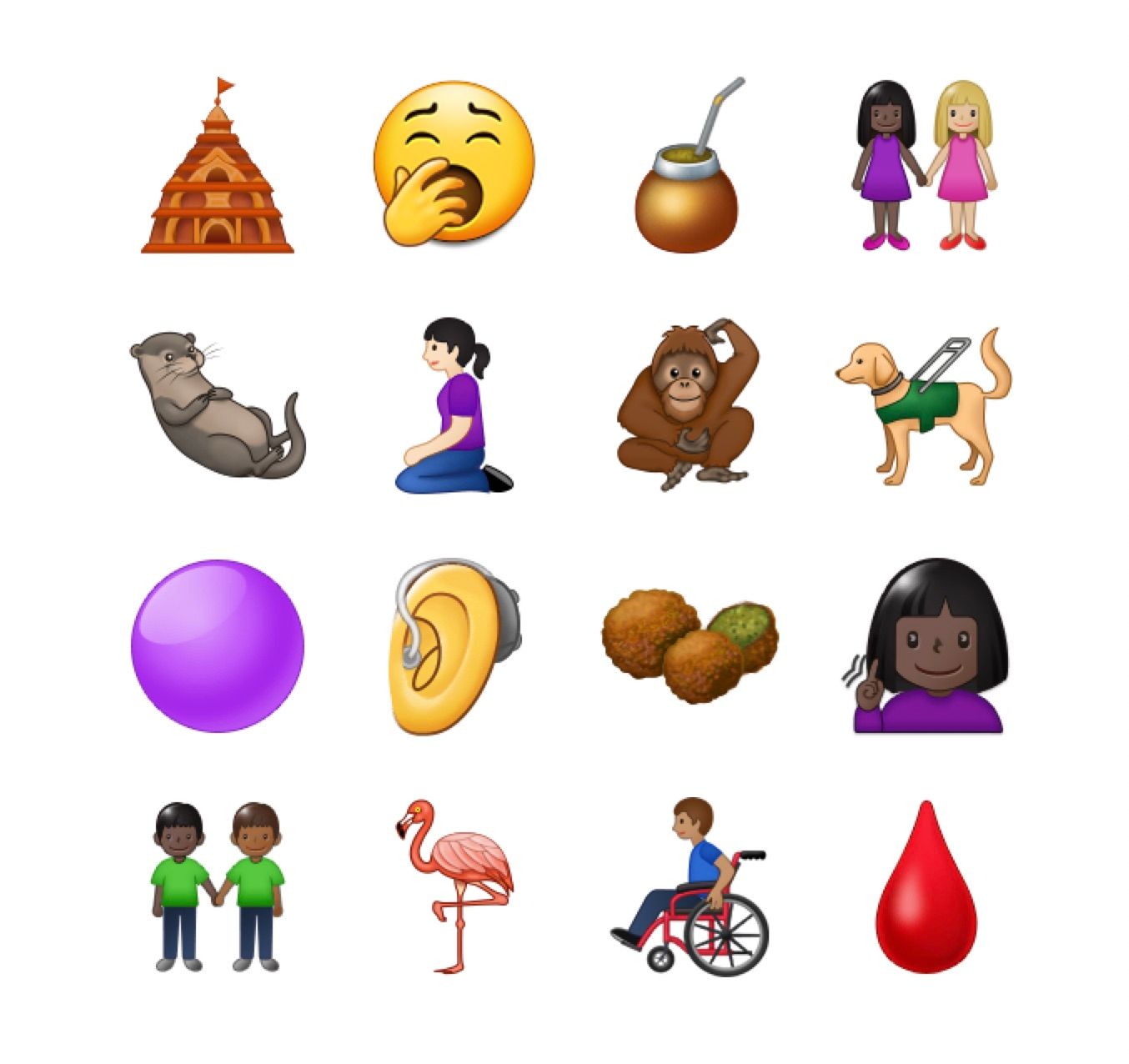Among the updates are people with mobility aids such as a wheelchair, cane, or hearing aid, a flamingo, otter, yawning face as well as a full suite of colors for the heart, circle and square shapes.