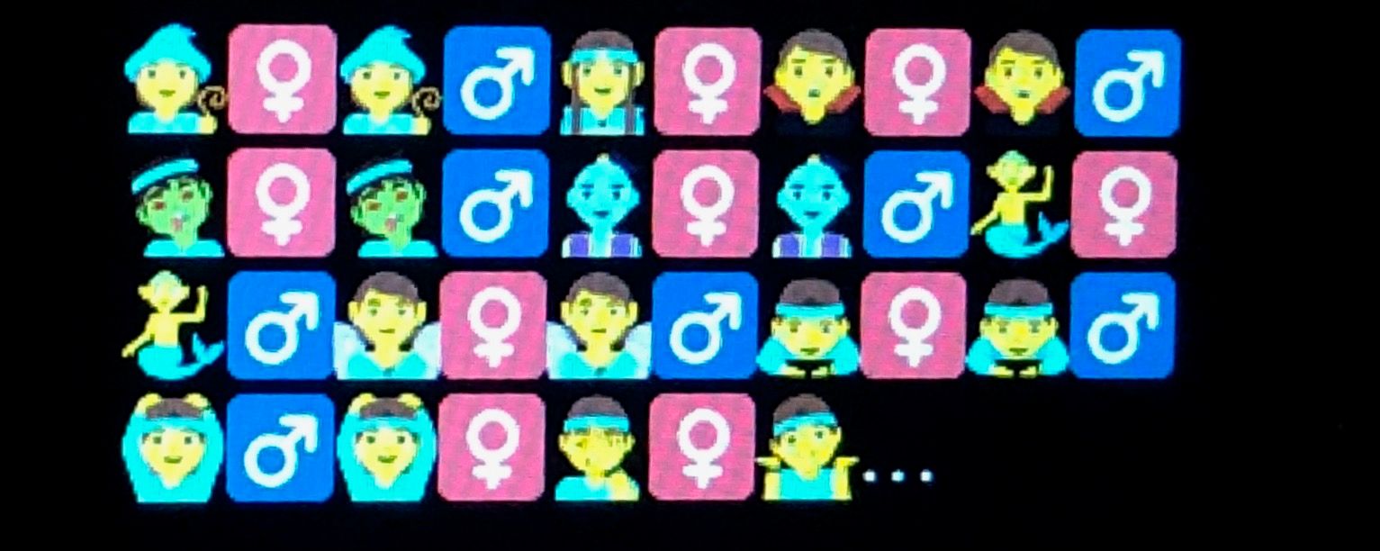 Some technical limitations in this implementation include text-parsing issues. Most notably, when it comes to gender and skin-tone sequences: the skin tones are mostly not shown, and the gendered characters display as the base emoji first, followed by a gender symbol.