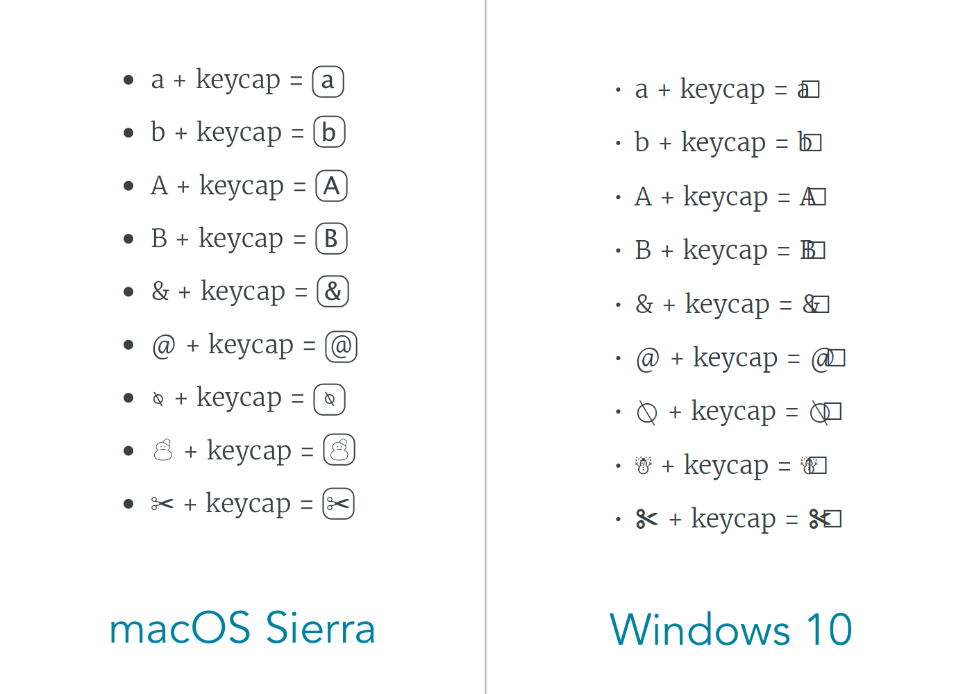 The difference is the keycap will display over anything, whether it is supported by the font or not.