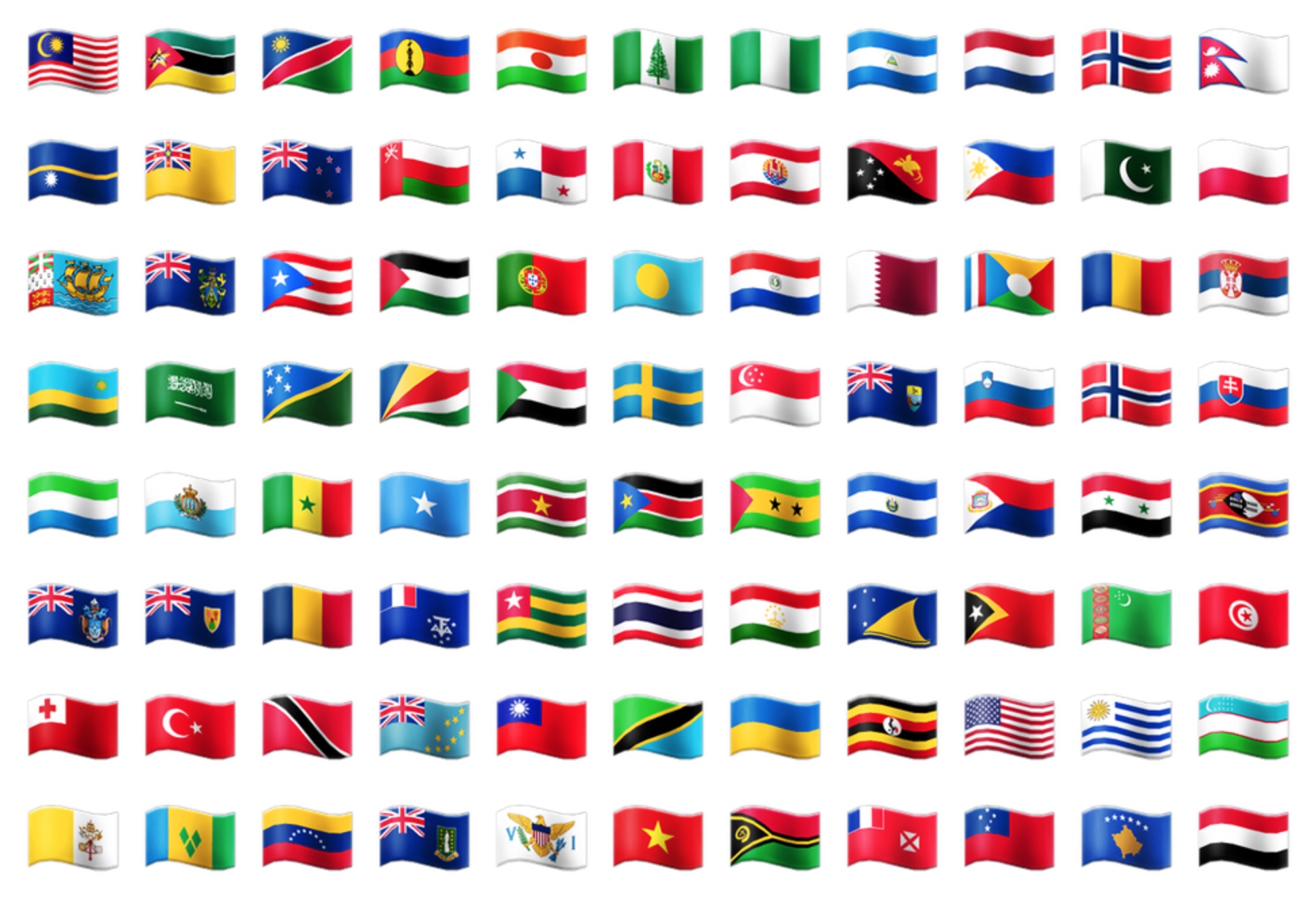 All 257 possible emoji flags are included in this release.