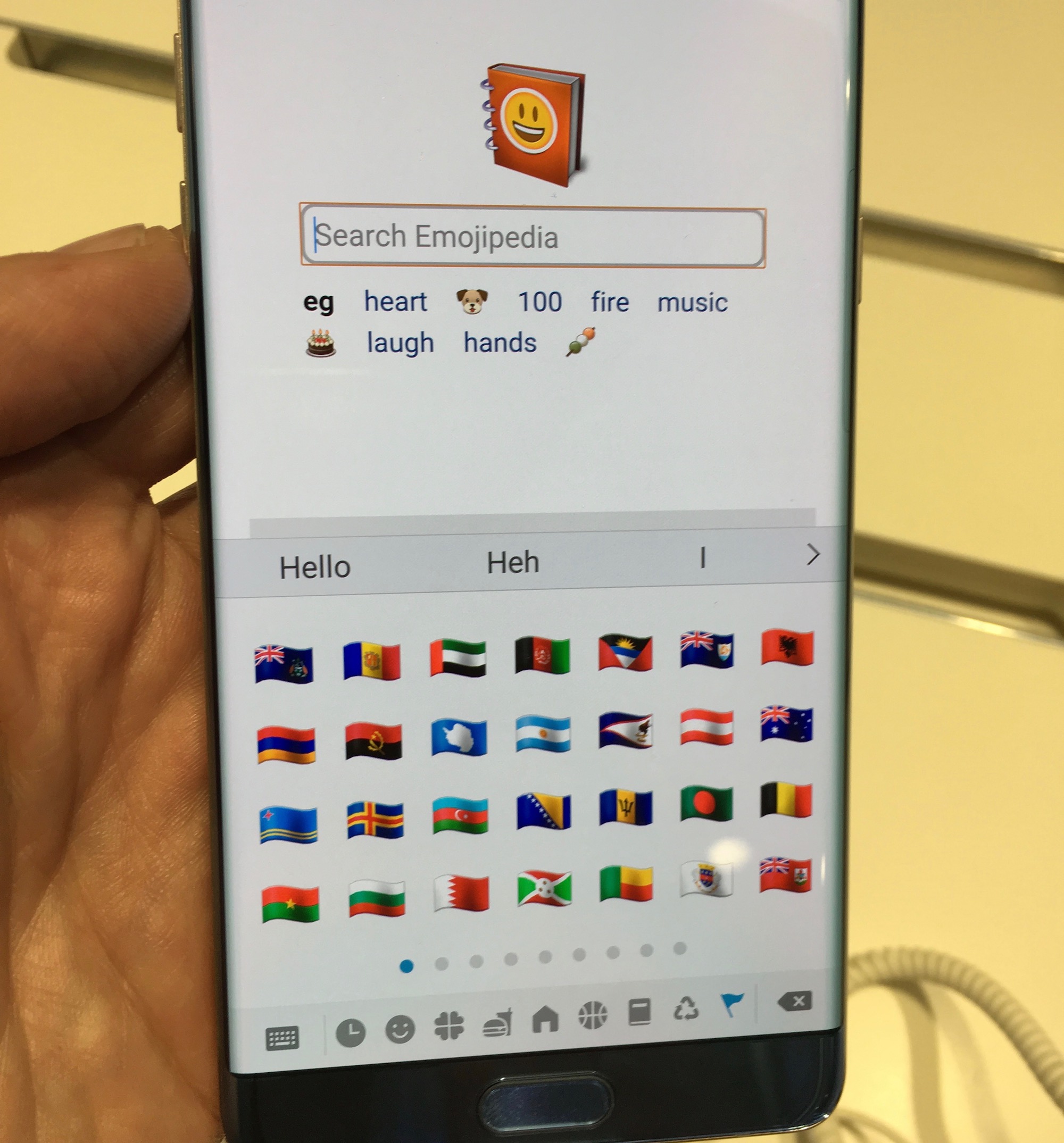 Above: Emoji flags are shown on Galaxy Note 7 instead of regional indicator codes.