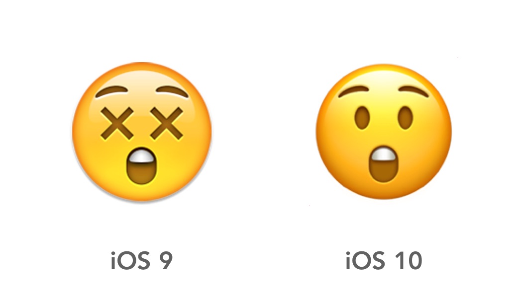 ๐ฒ Astonished Face loses the Xs for eyes, making it look less dead and more surprised. This change also helps differentiate ๐ฒ Astonished Face from ๐ต Dizzy Face for iOS 10 users.
