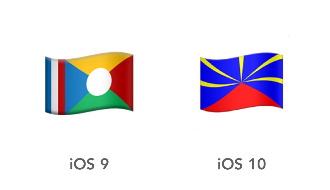 ๐ท๐ช Flag for Rรฉunion used an unofficial flag proposal in iOS 9. A "more official" (yet still unofficial) flag is shown in iOS 10: