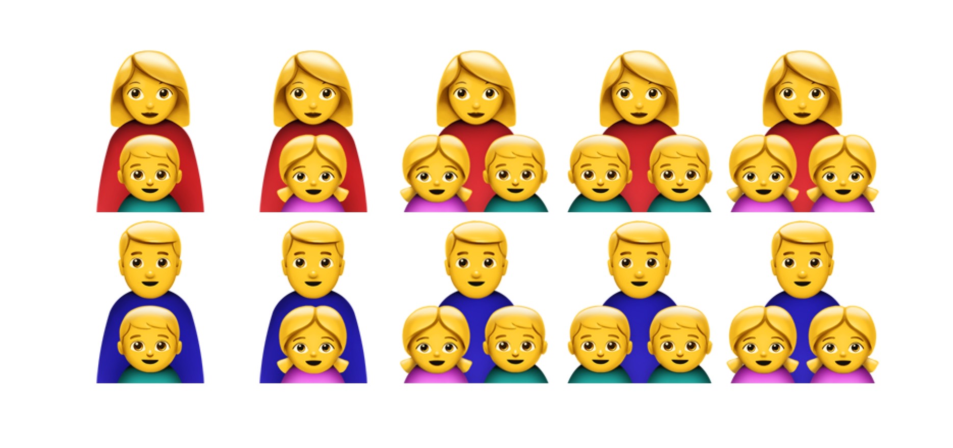 iOS 10 brings new single parent family combinations including one female parent or one male parent, with one or two children.
