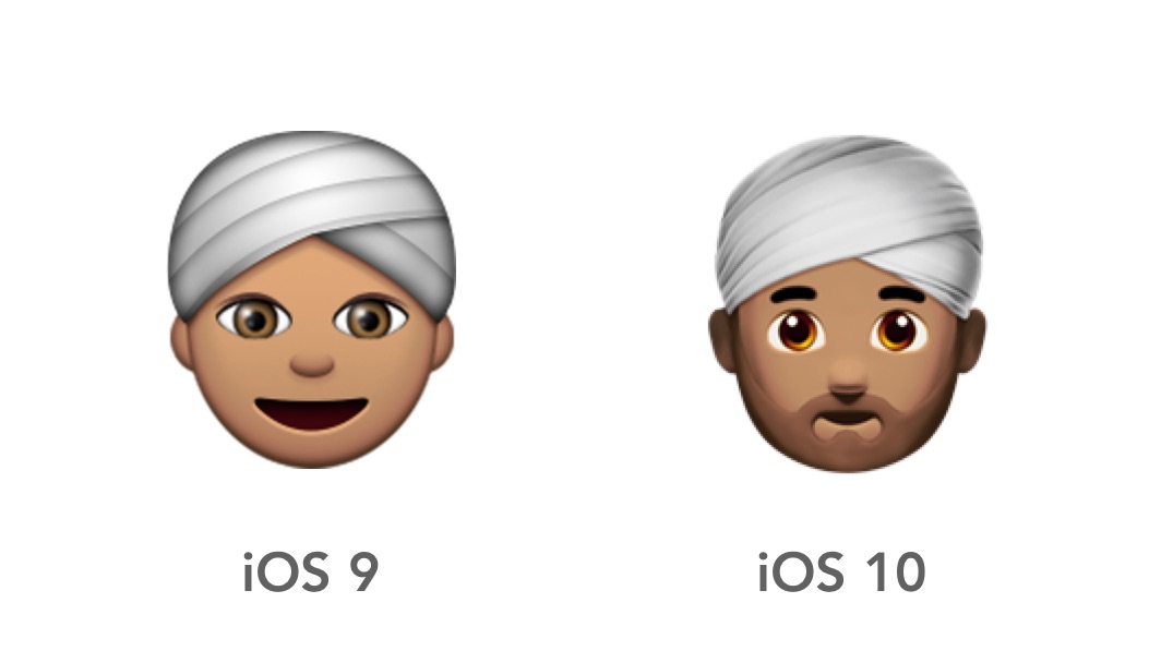 ๐ณ Man With Turban becomes the first[5] iOS emoji to sport a beard. Particularly noticeable when any of the non-default skin tones are used: