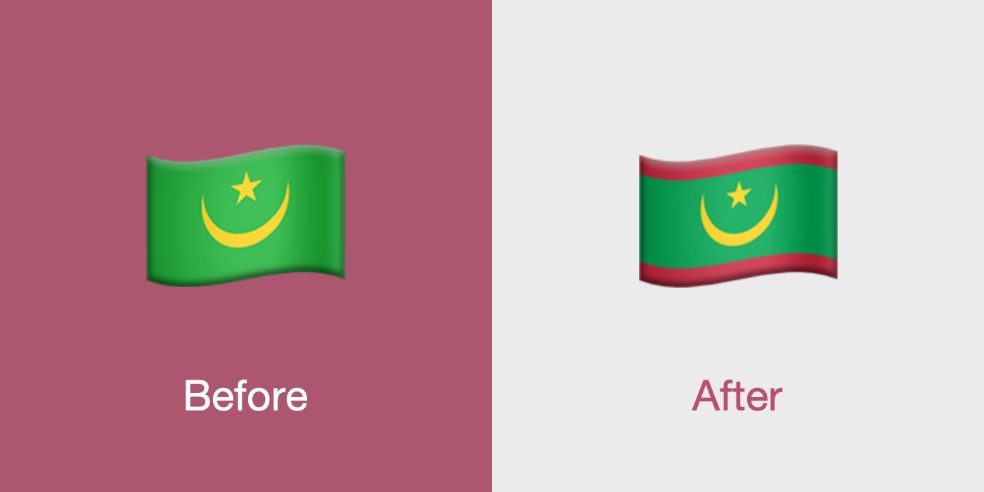 ๐ฒ๐ท Flag: Mauritania now shows the current flag design with horizontal red stripes on the top and bottom of the green flag.