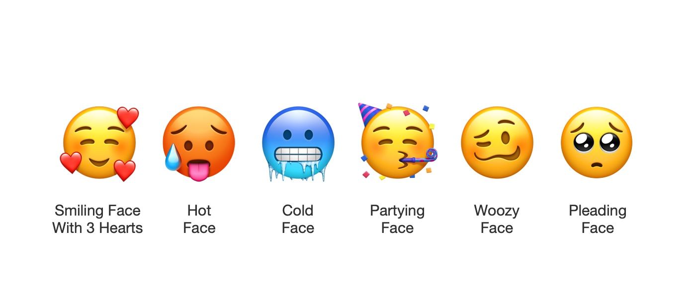 Smileys are generally the most popular of a new emoji set, and iOS delivers six new emojis to the People and Smileys category of the emoji keyboard in this update.