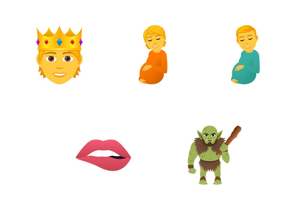 The remaining new emojis in this update include two new gender-neutral person emoji, π« Person with Crown and π« Pregnant Person, plus a third person emoji in the form of π« Pregnant Man.