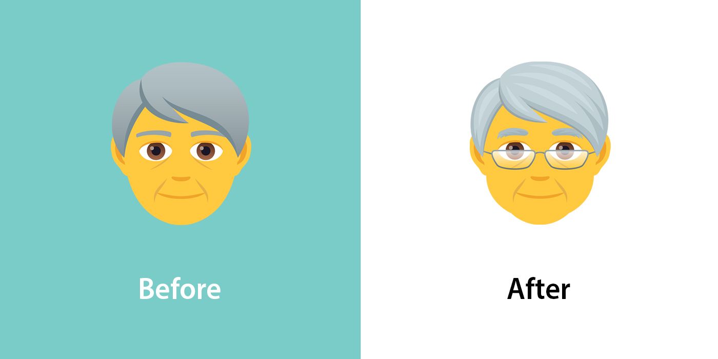 Exceptions include the likes of the color-specifying π§βπ¦° Person: Red Hair and π± Person: Blond Hair, and the π§ Older Person, who retains their grey hair but is now also wearing glasses.