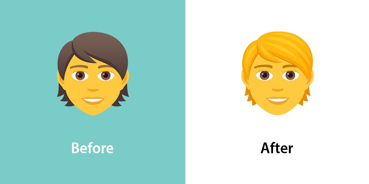 Notably, almost all of the people emojis without a skin tone modifier no longer have brown hair by default - instead, they now have a yellowish hair color, akin to how many other emoji vendors depict these emojis' hair. π§ Person is shown as an example below.