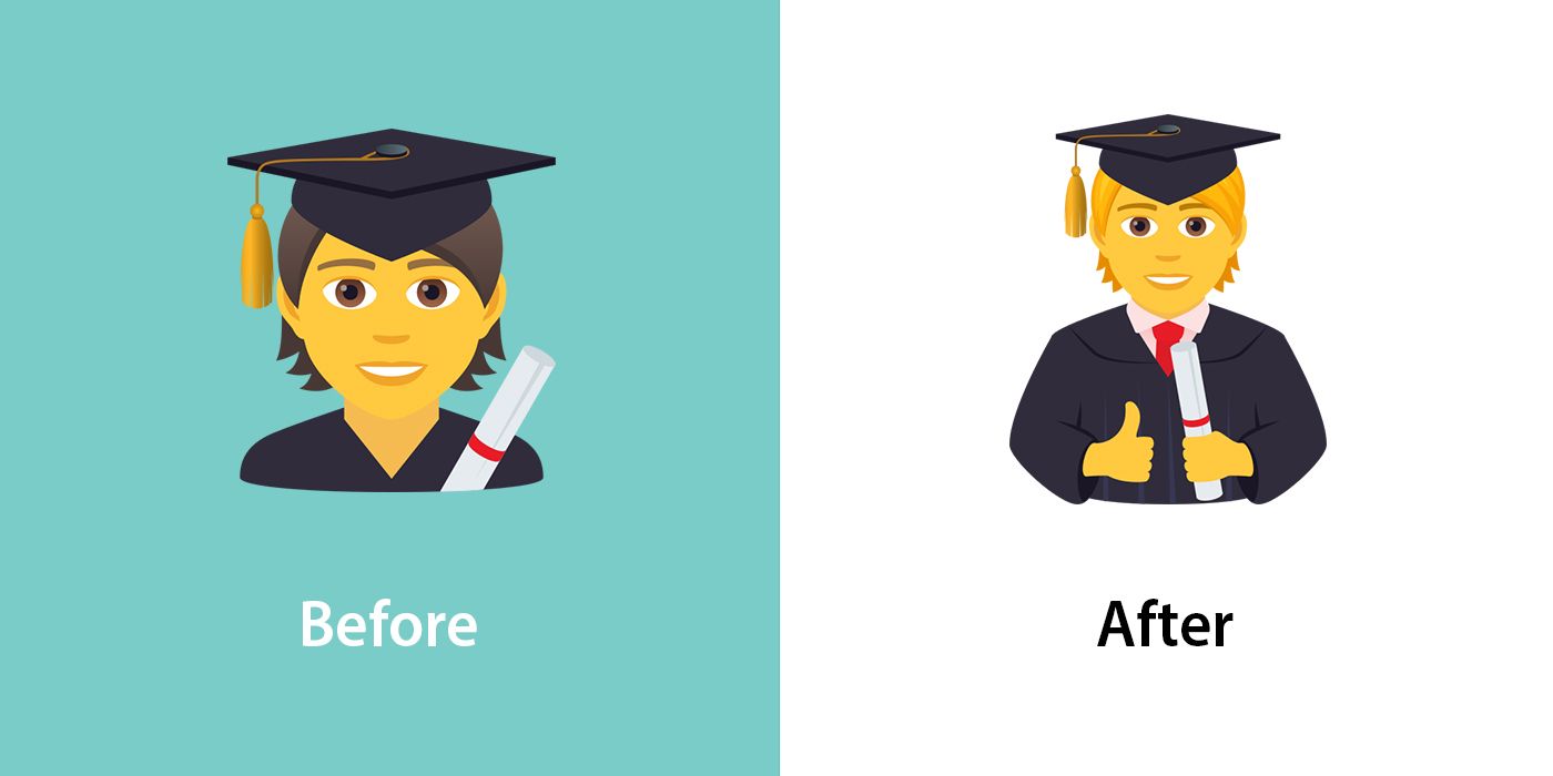 Additionally, all the different people gesturing and profession emojis now display more of the individual's torso, often with some additional pose or feature.