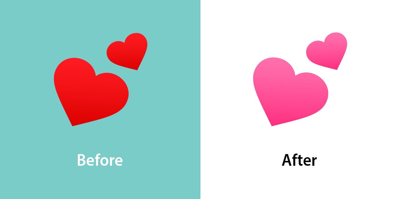 Many non-color-specific hearts such as π Two Hearts are now bubblegum pink instead of red.