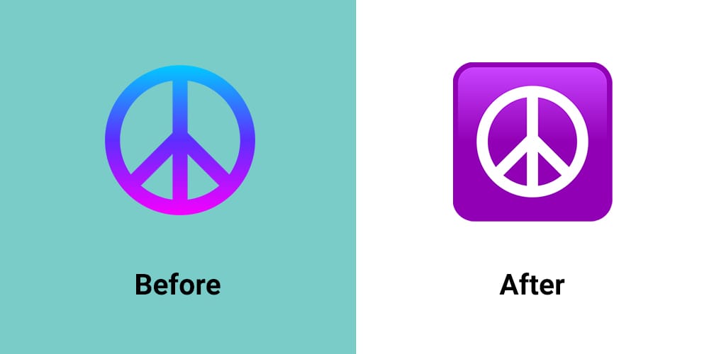 The โฎ๏ธ Peace Symbol is now against a purple block background.